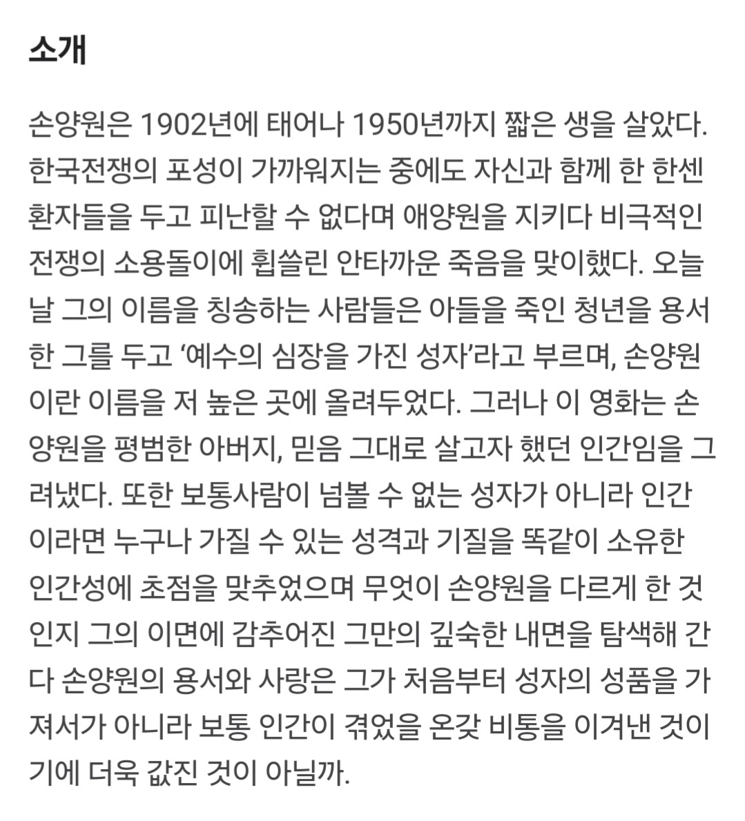 고 손양원 목사님의 삶을 다룬